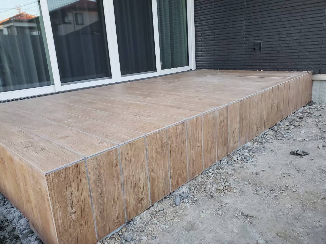 化粧ブロック門袖の新設 、木目調タイルデッキ施工